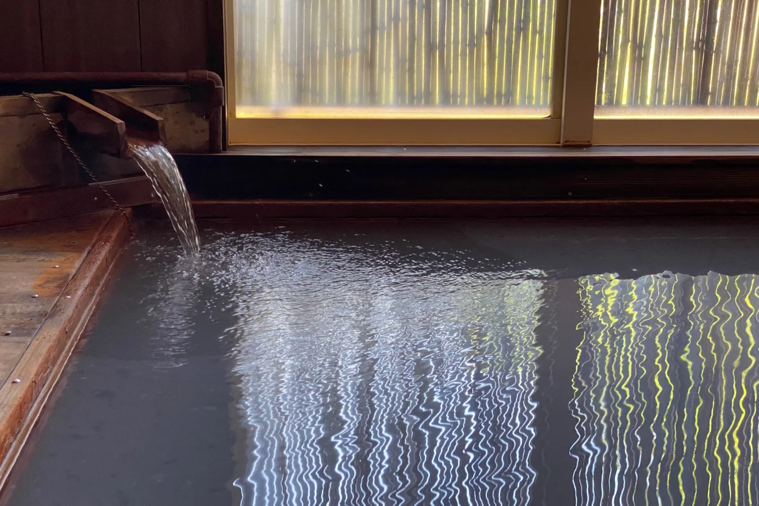シャワー設備を備えた3~4名様でご利用頂けるこじんまりとした男女別の内湯で、もちろん源泉かけ流し。ご入浴後はロビーから四季折々の景色を眺めつつ、ゆったりとしたひと時をお過ごしください。